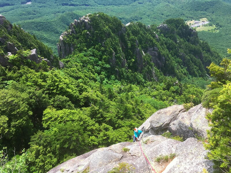 登り慣れていないとちょっと手こずるかもしれないので、小川山や瑞牆山のクライミング講習、マルチピッチクライミング等で花崗岩に慣れておくことをお勧めします。